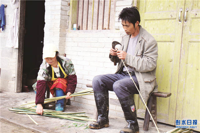 许业彬夫妻俩在编制农具。 融媒体记者 李亚军 摄影