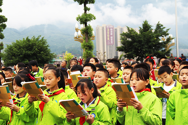 中国彭水网(融媒体记者 任 会 摄影)日前,为了引领师生走进古典文化,开拓视野,营造浓郁书香环境,弘扬中华传统文化。彭水第五小学开展了以“徜徉唐诗宋词元曲、吟咏诗经楚辞汉赋”为主题的第五届读书节活动。图为学生们正在诵读。