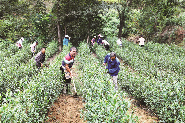 10月13日,保家镇清平社区白茶基地村民正在对白茶进行管护。与此同时,走马乡龙胜村村民正在抢抓农时,耕地种植百合。