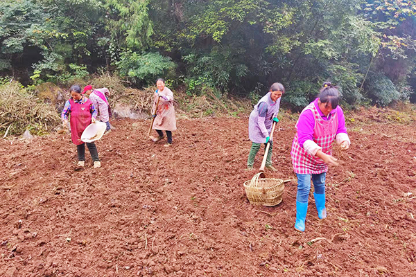 10月26日,在鹿鸣乡合理村5组,村民们正在移栽中药材虎杖,据了解,近年来,鹿鸣乡因地制宜发展中药材,带动了村民增收。