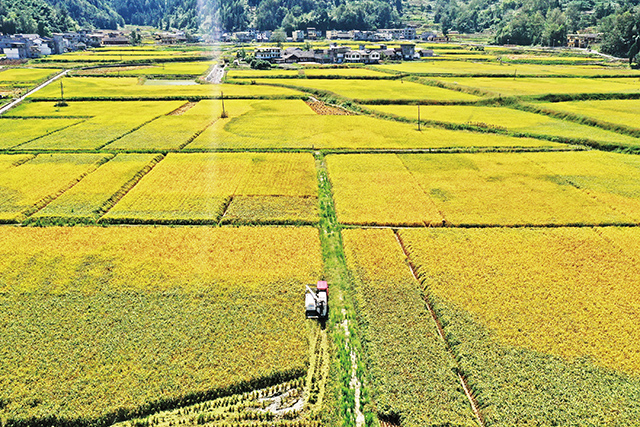 长生镇丰收的稻田