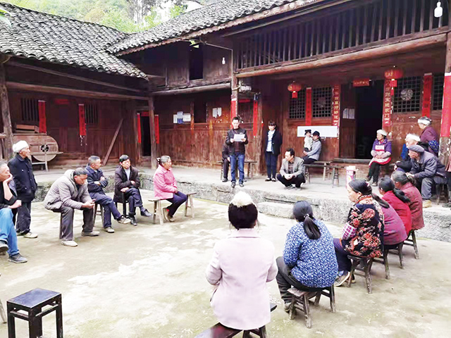 润溪乡岩角村组织党员干部和部分村民以院坝学习会的方式学习领悟党的十九届六中全会精神。 通讯员 晏永强 摄影