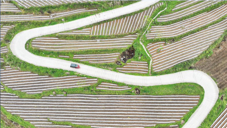 近年来,棣棠乡加快推进农业产业布局,不断完善基础设施建设,助推乡村振兴发展。图为一辆农用车行驶在棣棠乡黄泥村4组产业路上。