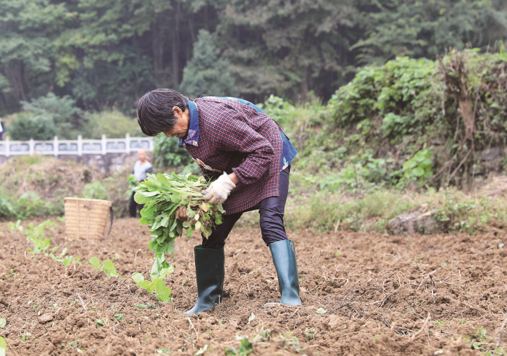村民在栽种蔬菜。