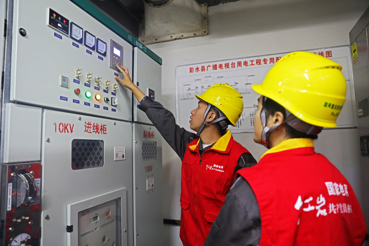国网彭水供电公司组织共产党员服务队到县融媒体中心进行用电安全隐患排查