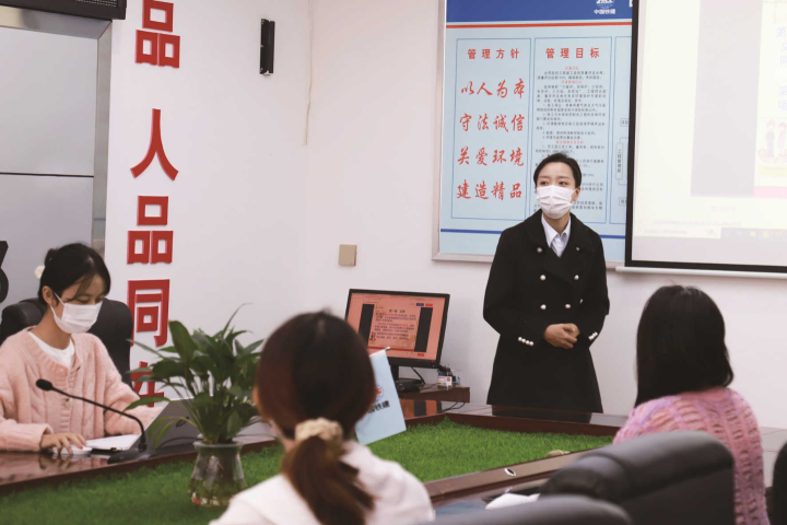 邓又聆正在给职工进行培训。