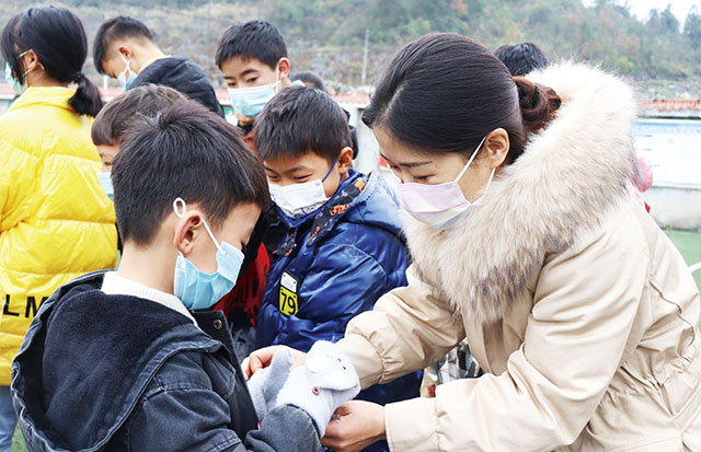 孩子们背上新书包、戴上新手套,喜笑颜开。“今天收到了叔叔阿姨送来的新书包和新鞋子,非常开心,以后我会好好学习,用优异的成绩回报他们,将这份爱和温暖传递下去。”楠木村小五年级学生李雨桐开心地说道。
