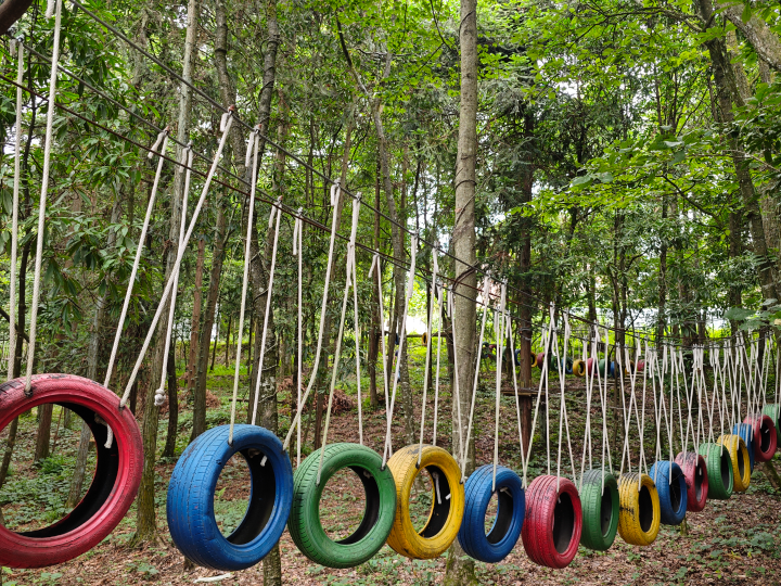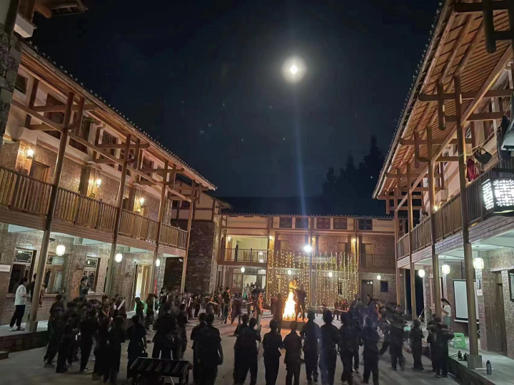 傍晚,架上烧烤架自烤羊肉串,燃起篝火跳着踩花山;还可沿着林间步道走走停停,让你完全忘却身后的职场压力与城市喧嚣。
