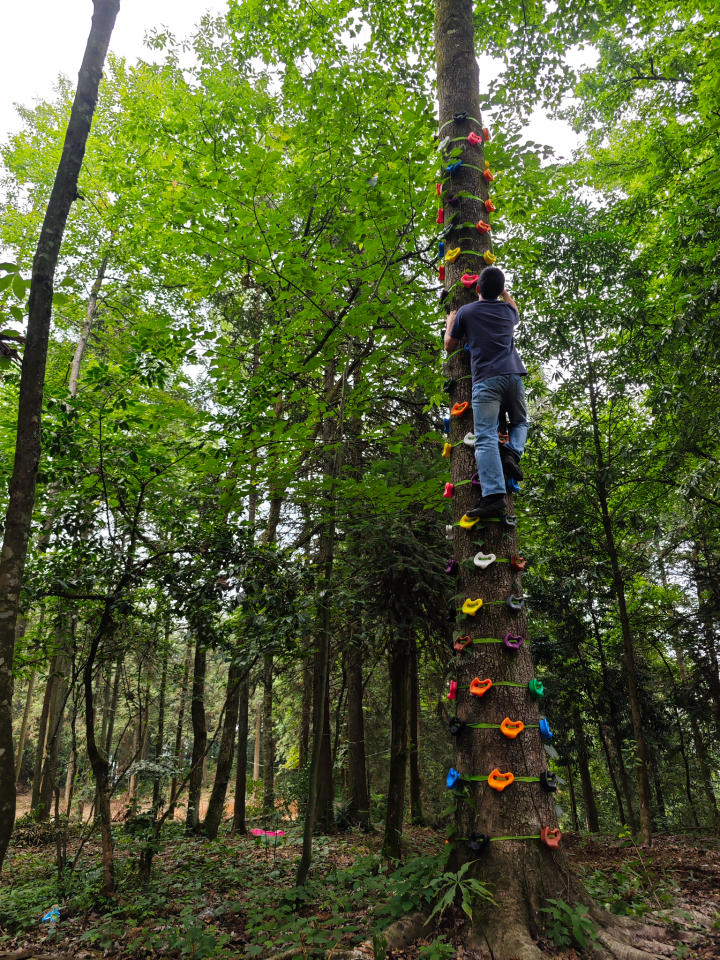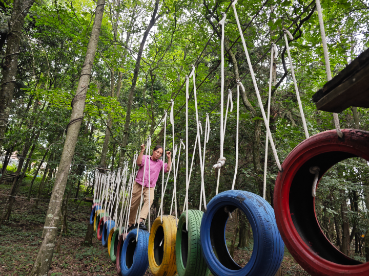 孩子们好动、爱探险,那就去玩丛林穿越吧,再搭配上丛林魔网、爬树等项目,极具趣味性和挑战性,建设中的篮球场也很快就能投入使用。