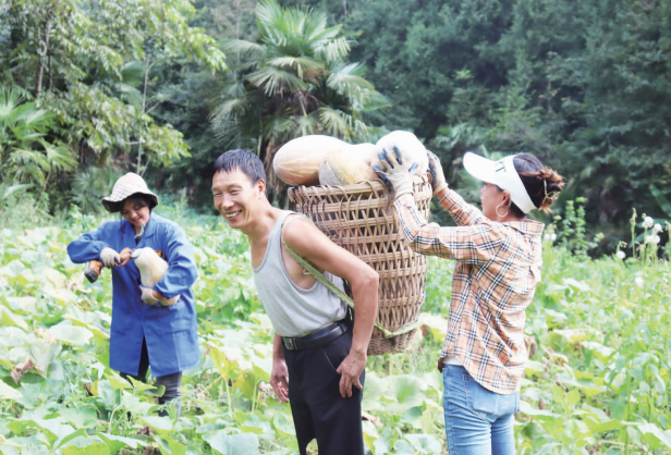 村民正采收南瓜。 摄影:冉江陵