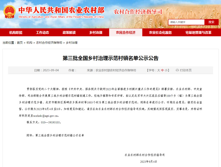100个乡(镇)为第三批全国乡村治理示范乡镇