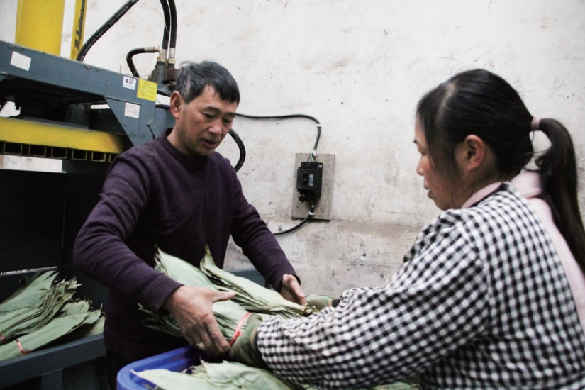 不相信粽叶也能卖钱,年轻人不愿上山采摘。年纪稍大的手脚不麻利,最初每天每人只能采摘20来斤鲜粽叶。冉启常回忆,公司前三年都处于亏损状态,主要是年产量上不去。为了鼓励更多的村民上山采粽叶,公司想了很多办法,发放肥料、经济补贴、建立基地等等,现在加入采摘队伍的村民越来越多,每天的采摘量也大大增加。