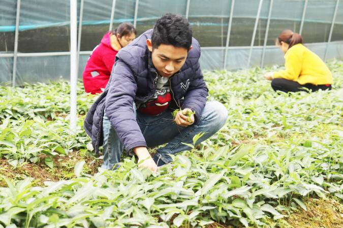 村民在苗药育苗大棚里务工。 记者 冉 立 摄影
