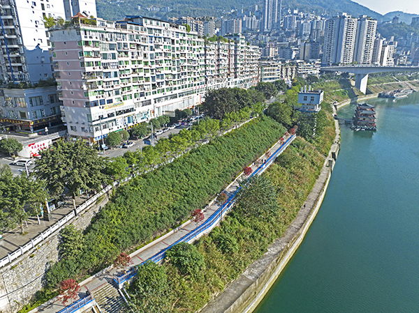 彭水还以国家园林县城创建为总抓手,以城市山城绿道建设为纽带,逐步衔接城市园林绿地公共休闲空间,在城市用地条件十分有限的情况下,通过实施公园更新提质工程,打造了一批宜游、宜业的城市山城绿道。建成乌江西路带状公园,步道全长2公里,绿地面积4.11万平方米,依托现有防洪护岸地形,因地制宜将行人慢性系统分为五个层级进行建设,每个步道层级选用不同的铺装材质进行建设,使步道色彩与自然水体景观相协调,打造人与自然和谐共生的慢步休闲体系。乌江东路滨江口袋公园则以郁江水文化为主题,建设完成120平方米的水文化主题浮雕,充分利用桥下空间,装饰美化桥下空间100平方米,铺装休闲小广场400平方米,美化周边环境2000平方米,将原来的闲置空地打造成集休闲、健身、观光为一体的城市公共休闲景观阳台。