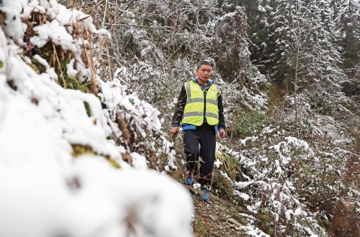 重庆彭水网(记者 赵 勇)12月19日,在太原镇花园村,护林员滕绍伦正在踏雪护林,查看林木损毁、野生动物生存等情况。近段时间,我县高海拔地区普降大雪,县、乡、村三级林长和护林员加大巡山护林力度,冒着大雪走进深山,守护林区安全。