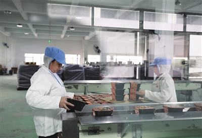 重庆彭水网(记者 李亚军)今年以来,我县大力发展红薯“一主”产业,坚持全产品研发、全链条打造、全效益提升,创新研发系列红薯产品,将红薯产业做精做大做强。图为彭水县宏绿食品有限公司生产车间,工人正在新增的酸辣粉丝生产线忙碌。