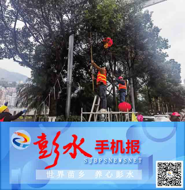 春节将至,为进一步美化城市形象,营造祥和的节日气氛,彭水对城区街景进行亮化,在主干街道及重要路口节点悬挂各类迎春灯饰。