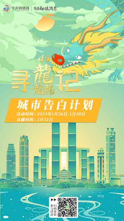 今日起至1月30日,全市5G融媒消息(手机报)将联动开展“寻‘龘’记 城市告白计划”年度用户互动活动。邀你一起“集龙卡”了解新重庆建设、“话表白”霸屏城市大屏,看直播抽手机购机大奖,三重好礼,敬待开启!
