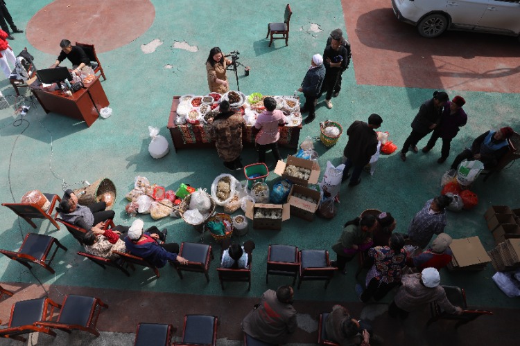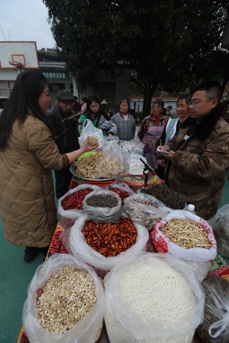 喧闹的现场,一位年过七旬的婆婆挤进了人群,“我这有胡豆、南瓜干、红苕粉些,你们帮我卖了嘛。”