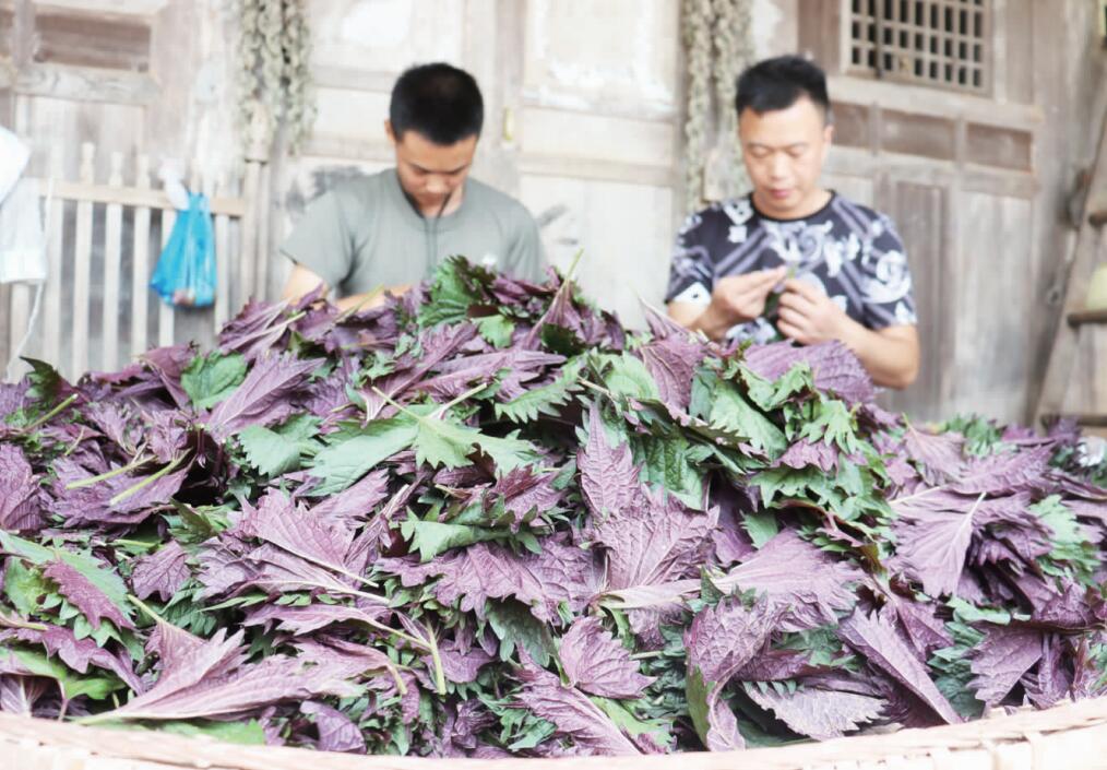 重庆彭水网(记者 冉立 摄影)7月15日,在石柳乡荞竹村5组,村民在挑选优质紫苏菜。彭水种植紫苏历史悠久,但一直以种植油用紫苏为主。今年,重庆后里生物技术有限公司在石柳乡试种紫苏菜获得成功,明年将全面推广该品种,以产业发展助推农民增收和乡村振兴。