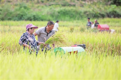 桐楼乡:田间收割水稻