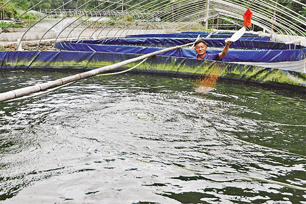 生态养殖垂钓基地旁,一条小溪从山间缓缓流淌而出。返乡创业村民张远洪就是通过利用好这股山泉水发展起特色养殖业,建起集养殖、垂钓、农家乐为一体的生态园。